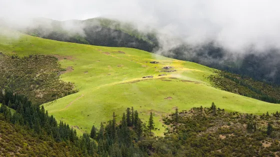 4 分4 則評價距離市中心28.1公里郭崗頂位於西俄洛鄉政府駐地對面山頂平台上,佔地面積為8000多畝草場,郭崗頂由於海拔較低,植被保護完整,野生動物種類較多,山形猶如坐落在一朵蓮花台上,每年夏季在此山開滿一種黃色花朵叫"郭崗花"的藏草葯而得名郭崗頂,這裏四季景色各異,秋夏大片的白樺林樹葉由綠到黃,使整座山由黃色樺木葉和綠色原始杉林,組合成一組美麗的風景線。