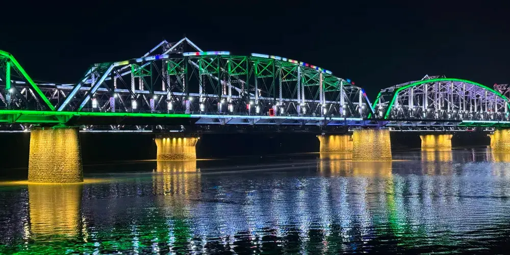 鴨綠江中朝邊界河遊船(1號碼頭)位於遼寧省丹東市振興區濱江中路鴨綠江1號觀光碼頭的熱門旅遊項目,以其獨特的地理位置和豐富的歷史文化背景吸引了眾多遊客。鴨綠江是中朝兩國的界河,遊船航線沿江而行,遊客可以近距離觀賞朝鮮的風光,包括威化島、將軍樓、志願軍浮橋過江處等景點。遊船途經鴨綠江斷橋和中朝友誼橋,這兩座橋是抗美援朝戰爭的歷史見證,遊客可以在船上感受那段波瀾壯闊的歷史。沿途可以欣賞到鴨綠江兩岸秀麗的山水風光,以及朝鮮一側的城市村莊、女子兵營等生活景象。