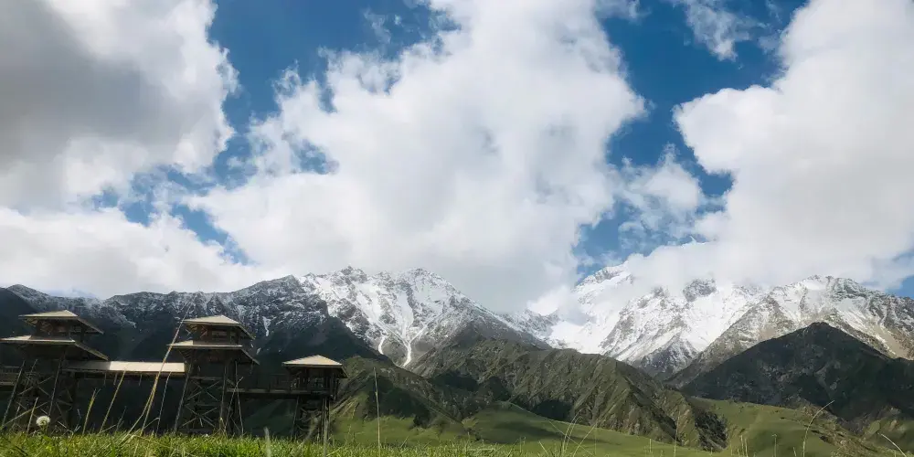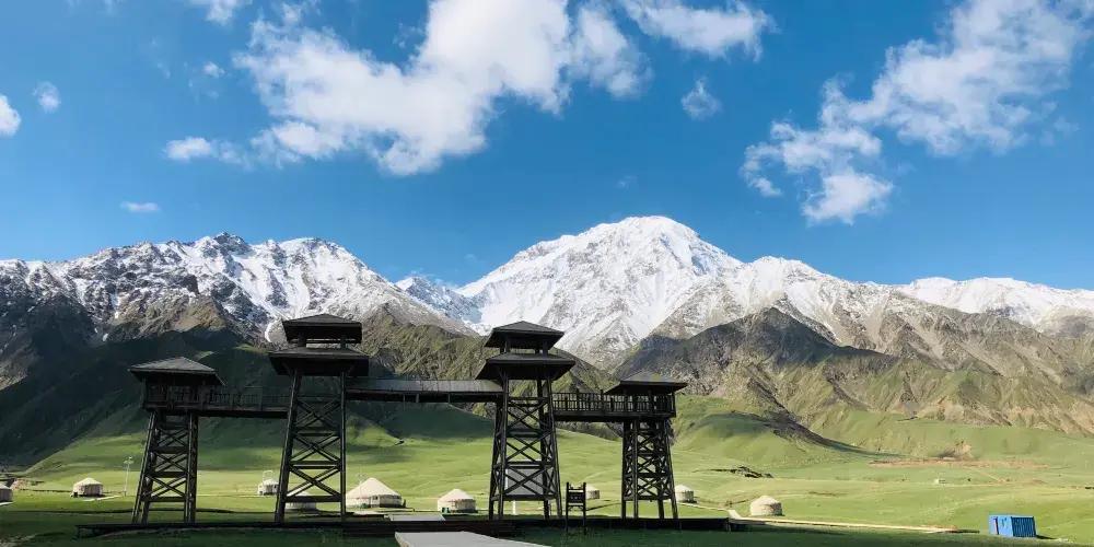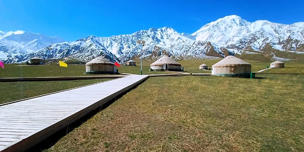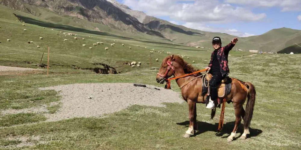亞門草場位於和田地區策勒縣努爾鄉以南,昆崙山以北,每逢6月-7月盛夏之季,氣候涼爽宜人,各種花草競相爭艷,鬱綠的草地和潔白的羊羣構成一幅誘人的草原景象,令人神往。而且漸進崑崙有“一天有四季,十里不同天”的獨特感受,是旅遊觀光,影視題材採集,外景攝影的好地方。