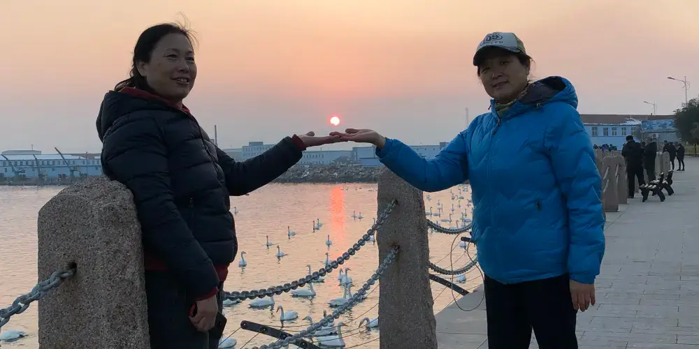 位於山東半島東端的煙墩角是一個瀕海的村莊,村東南有一座小山叫崮山,大概是在明朝時期,山頂上修了一座煙墩,每當日本侵略者進村襲擾,大家就點燃烽火互為聲勢,煙墩角由此而得名。每年11月到次年4月,許多天鵝會從西伯利亞飛來棲息過冬,吸引了專業攝影人和業餘攝影發燒友紛至沓來。