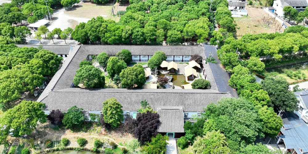 其佔地面積36.5畝,建築面積為6848平方米,由生態停車場、集散大樓和遊船碼頭三大部分組成。由建築大師隈研吾設計,大樓宛如茅草層疊的造型,是江南鄉野的具象表達;碩大無朋的三角形屋面,又如同沿着湖畔連亙的山脈,與自然完美地融合在一起。