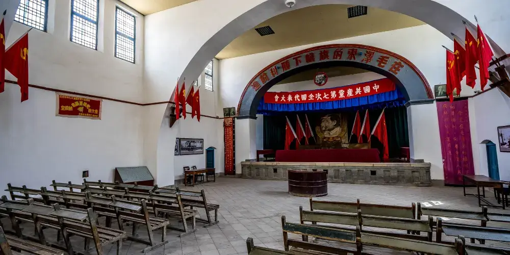 該景點所在楊家嶺革命的舊址位於陝西延安西北3公里處的楊家嶺村,佔地101畝。舊址內保存有中央大禮堂、名人舊居等,共計石窯18孔,接石口土窯19孔,平房23間,土窯洞數十孔。