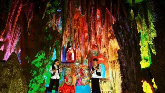 4.1 分1,488 則評價距離市中心 距離市中心4.4公里天籟•蝴蝶泉是位於十里畫廊沿線的景點,在很遠的地方就能看見石壁上一隻巨大的蝴蝶雕塑。景區內有一個不大的溶洞,洞中有一處看似蝴蝶的鐘乳石,景點名字因此而來。景區內可以欣賞到苗族和侗族的歌舞表演,讓人感受到濃濃的民族風情。門票 HKD 93+
