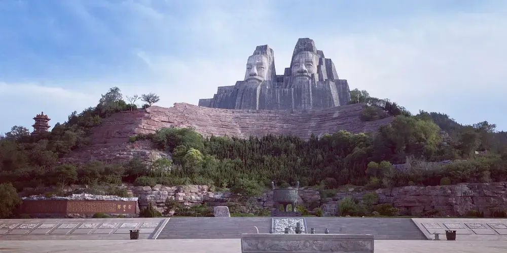 炎黃二帝廣場位於鄭州市黃河風景名勝區內,寬300米,長500米,從炎黃二帝塑像前一直延伸到黃河老灘。紀念壇是廣場上最重要的建築,分三層,呈金字塔狀。這裡是每年清明和中秋節時祭祖舉行大典的地方。紀念壇內設功勳館、接待廳、學術報告廳、影視、資訊網路廳等,中廳內有56民族大團結浮雕和一長明火炬,象徵中華民族生生不息。