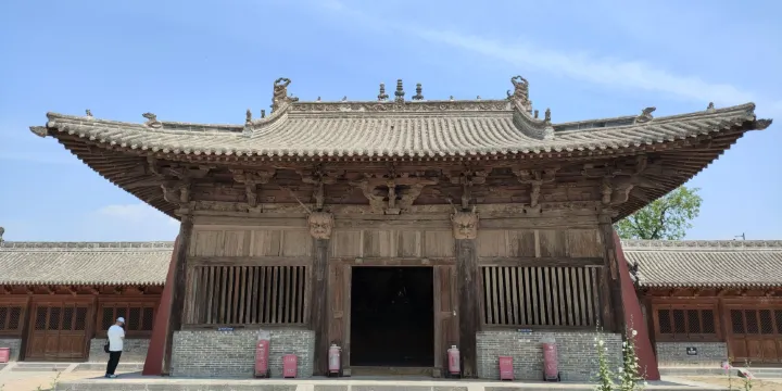 延慶寺坐落在陽白鄉善文村,從南禪寺向著溝川西北前行,距南禪寺6公里處。該寺卧居盆地,佛殿分外醒目。現存大殿寬三間,六架椽,歇山頂,總面寬約十三米,平面略近正方形。從建築形制上看,延慶寺的耍頭、補間斜拱、駝峯的處理均與佛光寺文殊殿相似。通長兩椽的大託腳木和耍頭又與朔州崇福寺彌陀殿、觀音殿的手法酷似。據此,專家們認為,如果斷定它是金代建築是不會相差過遠的。延慶寺外有一石幢,高約七米,分為四層,造型別致,結構緊密,上刻尊勝陀羅尼經,末行刊“景佑二年歲次乙亥拾月辛亥朔十五日…;…;時建”字樣,是為北宋所建。