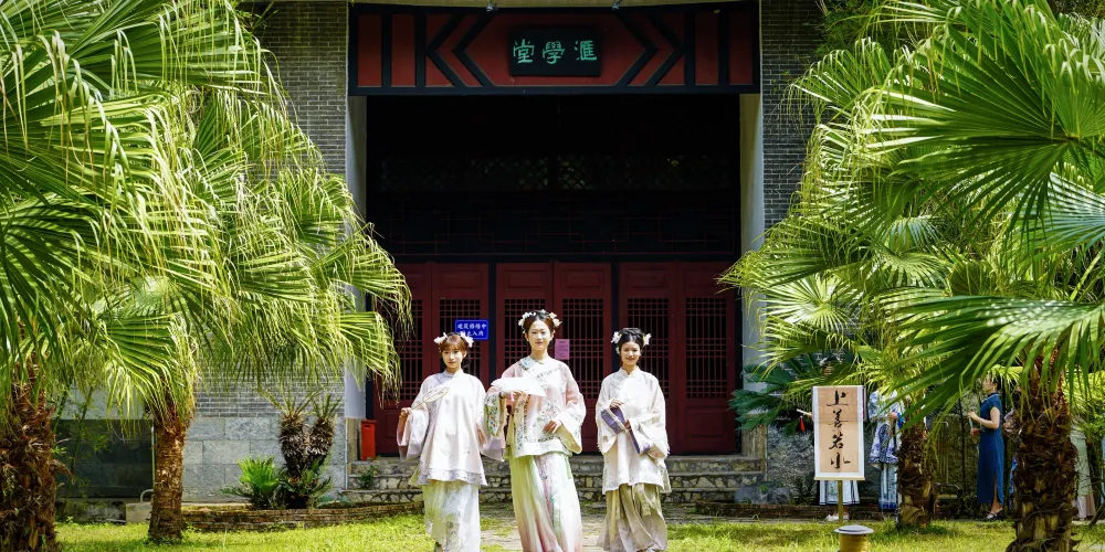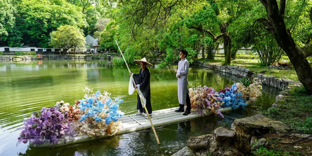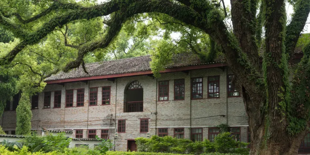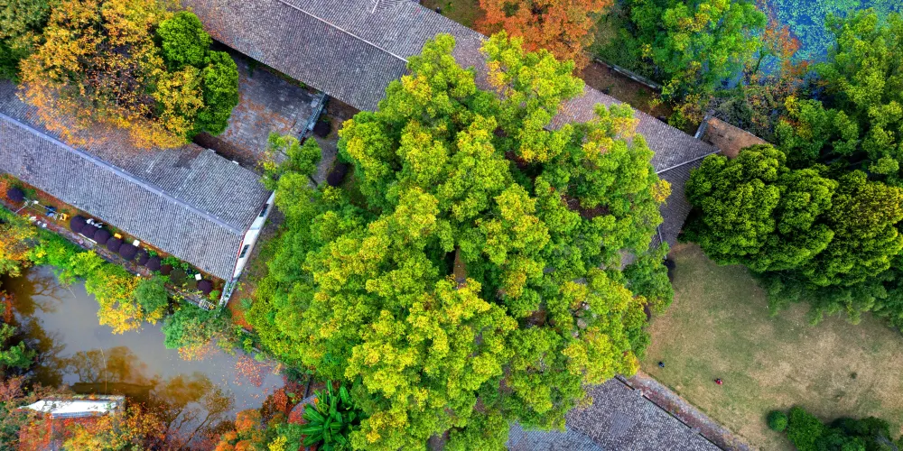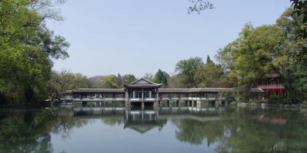 雁山園是清代桂林紳士唐岳的私人園林,它濃縮了桂林山水園林的景觀,既有江南園林的曲徑通幽,有“嶺南一園”之稱。進入雁山園,首先映入眼簾的是一面高大的方牆,上面鑲着“嶺南一名園”幾個大字。園中有一條相思河自南向北流淌,溪邊是一條彎曲的小石子路,由於形似龍的鱗紋,因此也叫龍脊路。路與河交匯處有一個圓形的回水灣,園中的山上往下看,好似一幅“雙龍戲珠圖”。園中出名的“雁山四寶”是方竹、綠梅、紅豆和丹桂,相思巖旁邊的一株紅豆樹很特別,三年才結子,紅豆比一般的大三倍。此處還有一間紅豆小屋,歷史學家陳寅恪先生曾在此居住。另一處奇景是一棵巨大的千年樟王,這棵樟樹不僅歷史悠久,造型也十分奇特。遠遠看去數的腰身處伸出七個枝幹,遠看神似北斗七星的排列。若是專程來訪,雁山園的景緻或許不足為奇,但若是留足時間慢慢品味,會別有一番感受。除了山水景緻,清代老建築大學堂、湖畔的”公子樓“靳羽西故居等古色古香的園林建築,都可不慌不忙的一一瀏覽。