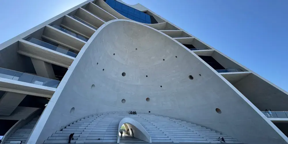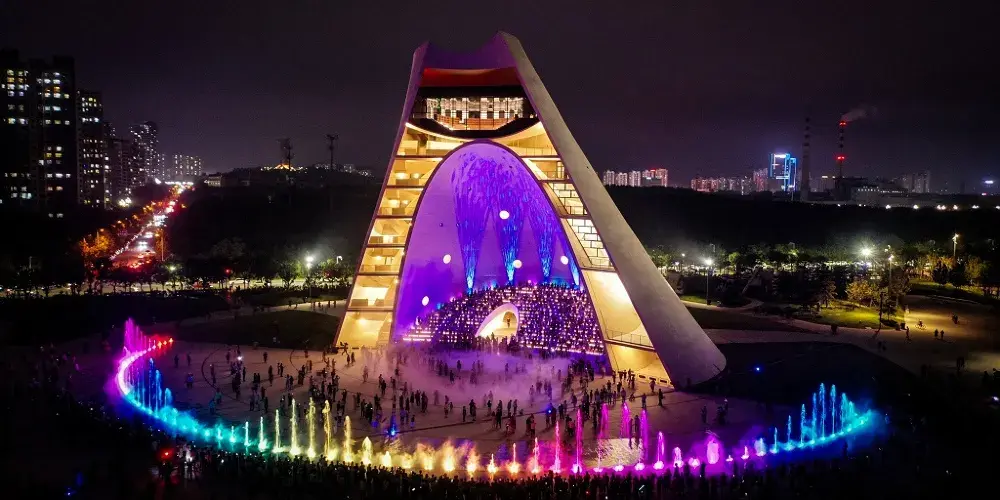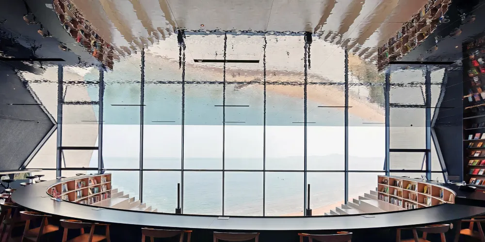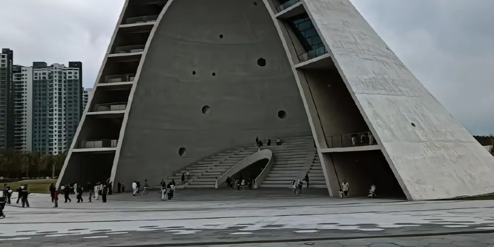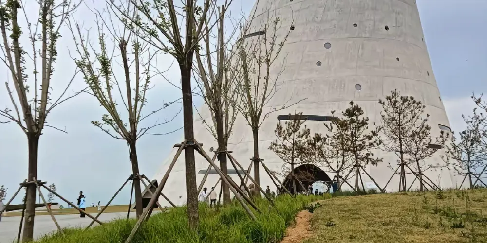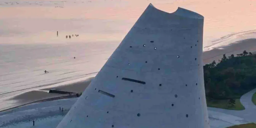 時光塔的設計靈感來源於太陽的運動軌跡,其幾何形態彷彿被陽光雕刻而成。時光塔以剖開的結構面向大海,象徵著對時間和自然的敬畏。時光塔內設有室外劇場、空中圖書館、數字展廊、咖啡休閒區以及獨特的半室外「現象空間」,頂部的「現象空間」可欣賞四季自然景觀。建築周邊的廣場設計也充滿巧思,包括貝殼形的下沉廣場、橢圓環形的行星軌跡設計以及「時光水道」,後者在春分和秋分時會準確地記錄時光塔影子的移動。時光塔不僅是一座建築地標,更是一個將古老東方智慧與當代城市生活相融合的文化空間,旨在喚起人們對自然現象的覺知。