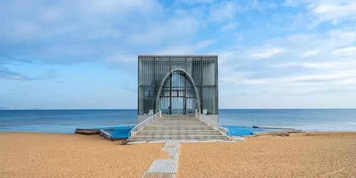 金沙灘顧名思義,其沙灘金黃細柔,色澤金黃亮麗,在國內實屬罕有。沙灘林帶鬱鬱蔥蔥,空氣清新潔淨,山、水、林、灘相映成趣;海濱路南一帶槐林映襯著座座歐式建築,既有自然氣息,又富歐陸風情,是休閒、度假的旅遊勝地。