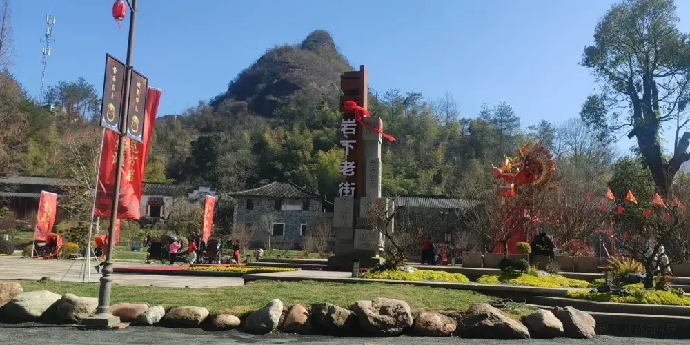 方岩風景名勝區位於永康東20公里左右,包含方岩(南岩)、石鼓寮、五峰、靈岩四個核心景區。除了不錯的丹霞地貌景觀,方岩也是許多當地百姓心中祈福許願的靈地。特別的是,這裡拜祭的不是菩薩,而是造福一方的宋朝清官胡則,方岩山頂的胡公祠常年香火不斷。遊玩整個景區大概需要1-2日,各子景區分開售票,也有免費交通車來回,遊人可根據自己的喜好安排行程。方岩、南岩和五峰之間距離不遠,步行可至。幾個子景區中,方岩無疑是遊玩的重點,它和隔壁的南岩包含在同一張門票內,通常一併遊玩。遊完方岩可步行前往旁邊南宋永康學派的發祥地五峰書院,石鼓寮是一處影視基地,可從南岩走過去,不想時間太趕也可安排在第二天。方岩入口處一塊大石碑上,是宋高宗為胡公所提的鎏金大字「赫靈」,由此步行至山頂的胡公祠約30分鐘。上山路上,會經過羅漢洞、虎跑泉、百步峻、飛橋棧道等景點,沿路四望,可領略方岩層層褶皺的峻峭山體,也能遠遠望見山頂的祠宇和岩壁上曲折向上的台階,都是方岩的代表景觀。繼續往上,走過刻有「天門」二字的門樓便是天街。沿街許多商販賣些紙燭之類的東西,價格可能略貴。天街盡頭「千人坑」碑亭往後不遠便是廣慈寺,旁邊就是知名的胡公祠了,這是景區內僅有幸存的古建築,梁枋檐柱上均有精美的雕刻,每天都有不少遊人在此祈福。原路返回至天門附近,有岔路通往南岩景區。這邊是新開發的胡公文化城,進入山門後向右,可欣賞北面山谷瑰麗的丹霞地貌山體,其中兩個圓形的山峰酷似「天下糧倉」,是這裡的標誌性景觀。景區內的圓夢塔是望遠的好地方,廣場則是每年廟會的表演場地。方岩廟會已有千年歷史,每年農曆八月十三胡公生日和九月初九重陽節,都會上演比試武藝為主的「打羅漢」,以及「彩吹唱」、「十八蝴蝶」等民俗節目,是當地一大盛事。遊完南岩,可由天門返回,前往西側的五峰風景區。