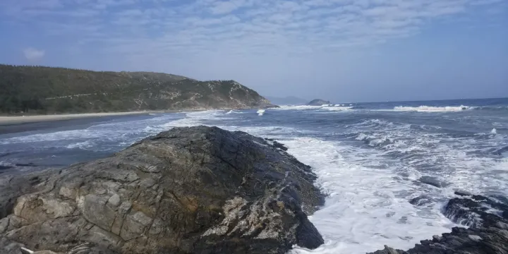 楊屋村海灘由兩座山體圍起的一個海灘,與灣仔村海灘相比,周邊環境顯得險峻,且風浪較大。因為這些海邊的玄武巖石經過海浪沖刷,變成暗黑色,形態嶙峋怪異,當地人管它叫做“黑排角”,也是很多驢友喜歡徒步的地方。