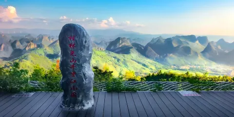 堯山景區是桂林市的最高峯,距離市中心僅8公里,素有“不到堯山頂,不見桂林景”的美譽。景區內搭乘堯山纜車,全長1416米,僅需8分鐘便可輕鬆到達海拔909米的山頂,將桂林的壯麗景色盡收眼底。無論是層巒疊翠的春夏,還是紅葉斑斕的深秋,或銀裝素裹的冬季,堯山都能帶給您令人歎為觀止的自然盛景。