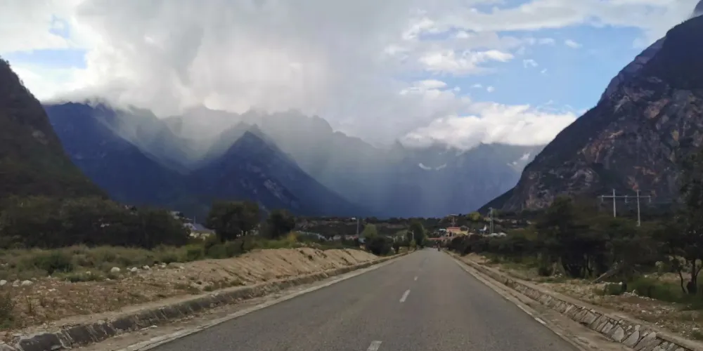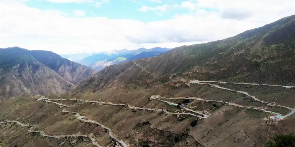 業拉山從4120米的邦達鎮過了埡口之後,便是知名的“怒江72拐”,又稱“九十九道拐”。這些拐又急又陡不説,大多都是U型彎。每個拐都堆集着二、三十公分厚的泥,汽車一過車輪捲起的泥土遮天蓋日。[1]一不小心,怒江就在下面等着你。令人望而生畏,堪稱中國公路上的奇蹟!