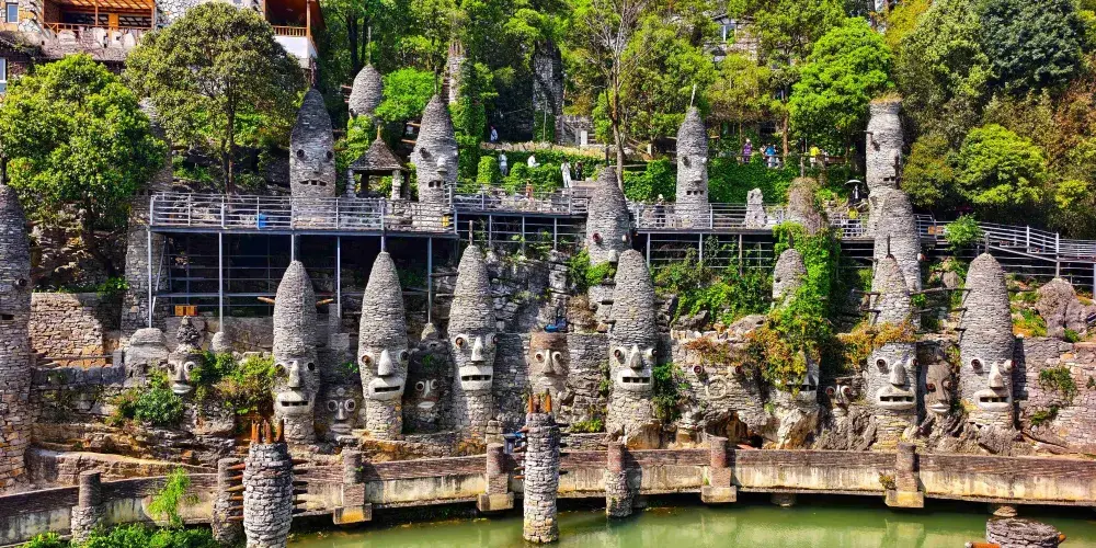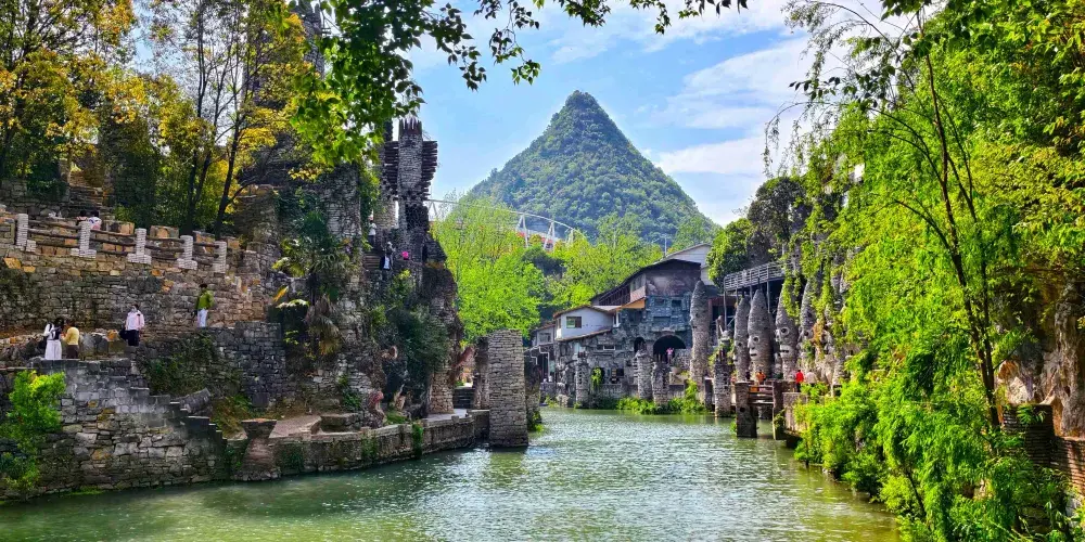 花溪黃金大道是一條沿着花溪河的梧桐步道,入秋後這裏成片的梧桐樹相繼泛黃,深秋時可見道路兩側金色夾道,直至梧桐樹葉鋪滿地面,蔚為壯觀。這裡是花溪地區賞秋的好去處,也是秋季攝影勝地。花溪黃金大道位於花溪公園西側往花溪水庫的方向上,沿着花溪河往西走到平橋,河兩岸開始出現清麗的風光。繼續沿河往西走,不久就可以看見那些高大的法國梧桐了。11月來此賞秋攝影,看河中倒影着的金色和黃色,景色如同仙境,令人心曠神怡。不過即使是春夏季節,這裏也是散步騎行的好地方,走在翠綠的繁密枝葉之下,吹吹河風,不能不説是一種享受。你也可以像那些年輕人一樣,騎着自行車來梧桐林中,悠閑地穿行。
