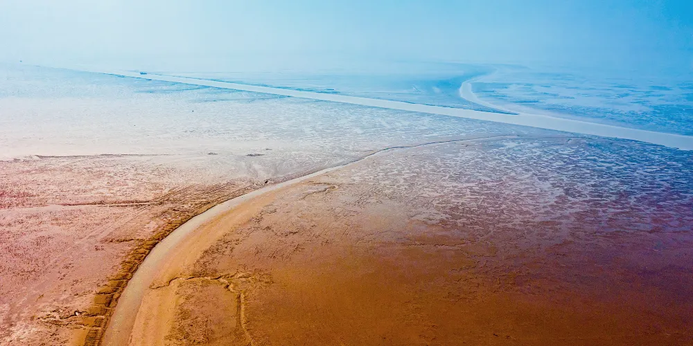 黃河口海水浴場景色優美、沙灘細膩,在海里暢遊,體會不一樣的游泳體驗。