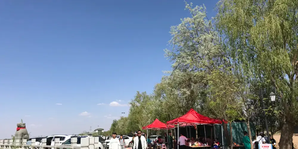 金水園位於首府銀川境內,距市區15千米。西臨黃河,背靠毛烏素沙地,是遊黃河、觀大漠,體味休閑、娛樂的好去處。園內的古渡口曾是西夏首府(今銀川市)的門户。公元1697年,清康熙皇帝在此東渡黃河平定噶爾丹,並留下了“歷盡邊山再渡河”的壯麗詩篇。位於金水園中心的大型雕塑《黃河頌》是金水旅遊區的標誌性建築,高19.98米,底部為展示黃河歷史的展覽大廳,面積1000平方米。雕塑內設有觀光電梯,遊人可登上頂部,兩岸風光盡收眼底,真是“西望河源天際闊,濁流滾滾自崑崙”。在觀河亭處,登上游船逆水而上,可觀賞黃河大橋、河東機場、甘露寺等建築和古蹟,順流而下,河東有橫城堡、明長城、漢墓羣、水洞溝遺址,河西有寧河台、黃河防護林等,水沙相融,景色頗為壯觀。