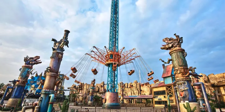 恐龍祕境是開放式娛樂嘉年華,內設有10餘項遊樂設施, 如浪漫炫麗的百米燈光摩天輪、沉浸感爆棚的360度環球影院、 體驗速度與激情的室外卡丁車、大水花愛好者的激流勇進,以及 適合小朋友們和合家歡的瘋狂水母、高空軌道、萌寵樂園等,既 可以為年輕遊客提供浪漫、刺激的體驗感,也可滿足親子家庭的 高質量陪伴。擁有世界大樹化石林,1314棵象徵一生一世的 樹化石述説著“亙古之戀”,或似戀人擁抱、或似雙手交握,是遊客和情侶的拍照打卡聖地。