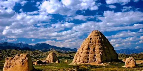 西夏陵,位於銀川市西郊的賀蘭山麓,是西夏王朝的皇家陵寢,安葬了西夏王朝的多位皇帝。現今整個陵區有9座帝陵和140多座陪葬墓,是中國歷史上佔地面積最廣的皇家陵寢之一。陵墓的形狀與其他中國陵墓截然不同,呈倒扣的窩頭形。除此之外,景區內還建有西夏陵博物館、西夏陵-西夏史話藝術館,西夏碑林等設施場地,幫助遊客了解陵墓背後的歷史文化。