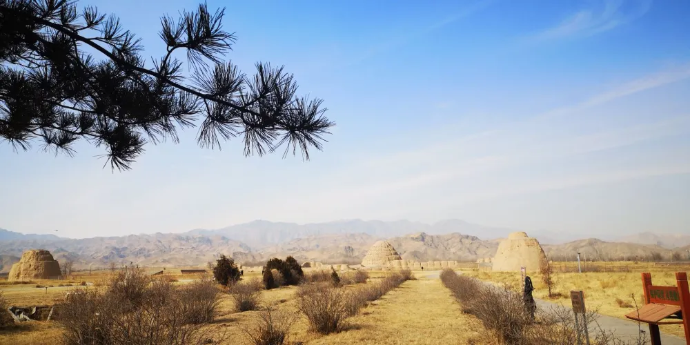 景區內昊王陵可以走近參觀。巨大的倒立半圓形陵墓立於荒地之上,歷史滄桑近在眼前,遠處的賀蘭山巒谷交錯,令人頓生悲涼壯闊的滄桑之感。