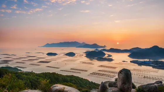 則評價花竹村居高臨下,水天相連,有着一望無際的景觀。近景浮標竹竿,中景魚排木屋,遠景島嶼帆影,井然有序。花竹村還是觀賞“福瑤列島”全景之佳地,其中以日出尤為壯美。