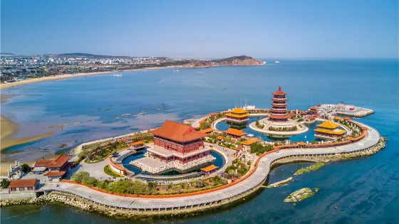 4.4 分2,873 則評價距離市中心 距離市中心71.6公里八仙過海景區位於蓬萊市北部的黃海之濱,有一座八仙橋將景區和海濱路相連。這裡是神話傳説中八仙過海的地方,景區內以“八仙過海”的傳説為主題,建有仿古亭閣與園林,你可以在此拜仙祈福、感受濃郁的道教文化氛圍,也可以隨處都能欣賞海景。景區內有八仙橋、仙源樓、望瀛樓、鐘鼓樓、八仙祠、會仙閣、拜仙壇等建築。八仙橋的前後各有一座牌坊,第一座牌坊的上額正面與背面分別刻有“八仙過海口”和“人間仙境”九個大字,均為北宋大文豪蘇東坡的手跡。遊覽指南走過八仙橋會看到仙源樓,這是進出景區的門樓,樓上方懸掛的匾額刻有“仙源”兩個大字,據説為唐太宗李世民題寫。樓後有一座拱月形影壁,稱為“八仙壁”,正中有六十四塊白玉方石連接而成的浮雕,描繪的是八仙過海的故事,栩栩如生。景區內有一大一小兩個湖泊,稱為“瑤池”。從八仙壁左右兩側可沿着環島觀光路步行遊覽,一路上可見到各種假山奇石。湖邊有個海豹島,可以與海豹零距離接觸。景區中部有座八仙祠,是一個獨立的院落建築,裏面可以上香祈福,八仙祠左右還各有一配殿,分別是祈福殿和財神殿。望瀛樓是建於小瑤池中的巍峨建築,它的一、二層是中華傳統藝術博物館,可以欣賞到各種珍奇玉器、瓷器等藝術品。其中有一幅用1888塊翡翠、象牙、玉石精雕而成、建國以來很大的漆雕鑲嵌壁畫《羣仙祝壽圖》,堪稱傳世之寶。此外還有曾國藩、紅學泰斗馮其庸等書寫的楹聯等珍貴藏品。會仙閣位於大瑤池中,是一棟有着地下一層和地上五層的仿古塔閣建築,是景區的標誌性建築,閣中供奉着道教非常有代表性的七十二位神仙。登上閣頂極目遠眺,碧海藍天盡收眼底。拜仙壇是景區的最後一個景觀,可在“八仙過海”的雕像前拜仙祈福,也可與“八仙過海處”石碑合影留念。