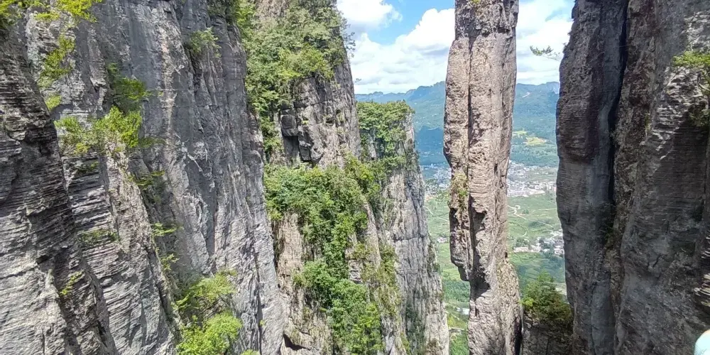 雲龍地縫景區,面積11.3平方千米,海拔600-800米。景區主要地貌景觀類型有地縫、瀑布、深潭、溶洞、地下暗河、象形石、地質剖面。雲龍地縫,平面呈“之”字型,近南北向展布,全長3.6千米,平均深達75米,平均寬度15米,河谷深邃,岸壁陡直,有“十里百丈絕壁”之稱,是雲龍地縫景區的主體觀光區域。雲龍地縫兩壁陡直,近於平行,上下寬窄基本一致,斷面呈“U”字形,極為罕見,具有稀缺性、獨特性。