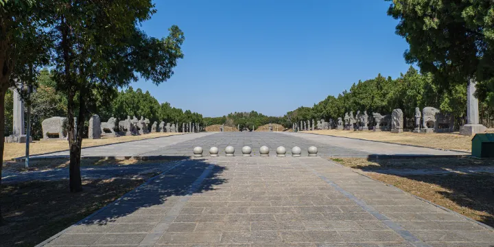 永定陵在鞏義市蔡莊村北,310國道北側,為宋真宗趙恆的陵墓。陪葬有劉皇后、楊淑妃、李宸妃等,其中的劉皇后便是民間戲曲“狸貓換太子”裏的那個皇后。永定陵神道及陵前的造像24對保存完整,是北宋諸陵中保存較好的一組。這些造像的特點是胖,馴馬人看起來比仗馬還肥,而仗馬脖子上掛的瓔珞竟也十分粗大。另外,武士的鎧甲、頭盔等的雕刻都非常細緻。另外,永定陵區內還有宋代大臣——寇準、包拯的墓。寇準墓在永定陵西北6公里,現僅存墓前石刻數件。包拯墓在永定陵北面後泉溝村西北一公里的土嶺上,墓前有清人立的“宋丞相孝肅包公之墓”碑一通。
