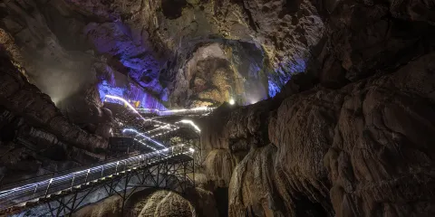 - 4.5分距離市中心15.7公里永福天坑能从底部步行进入的喀斯特漏斗,溶洞与天坑相融合。游览这里,以寻“寿”开始,可以领略洞中钟乳石巨景长廊的精美,看布在岩壁上的金砂,钟乳石巨景长廊式溶洞像一副精美的画卷,让人看了流连忘返。考虑到永福乾龙天坑的资源不可再生性,将乾龙天坑每日游客人数进行了限制。