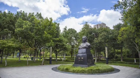 則評價楓園由原來的西門公園更名而來,是為紀念朱楓烈士,迎接朱楓烈士雕像落户西門公園,故更名為楓園。公園內種植紅楓、青楓、楓香、雪松等植物,以樹喻人,彰顯朱楓烈士英勇無畏、堅貞不屈的革命精神;公園入口處有一大型景觀石,上刻由原浙江省政協主席劉楓題寫的“楓園”二字。