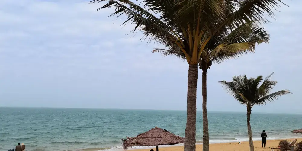 盈濱半島北臨瓊州海峽,三面環海,形似彎月,岸邊沙灘廣闊、細軟無泥,海水碧藍澄澈,有內外雙海灣,島上還擁有稀缺的火山温泉。盈濱半島度假區毗鄰省會海口市,是海口西海岸“17公里黃金海岸線”的延伸區,有海口的“亞龍灣”美譽。距離海口國貿中心區17公里,到海口火車站不到5分鐘車程,距離美蘭機場35公里。2011年海南城際輕軌通車,在盈濱半島旁設立了一個輕軌站點,從這裏坐輕軌到達三亞僅需90分鐘。