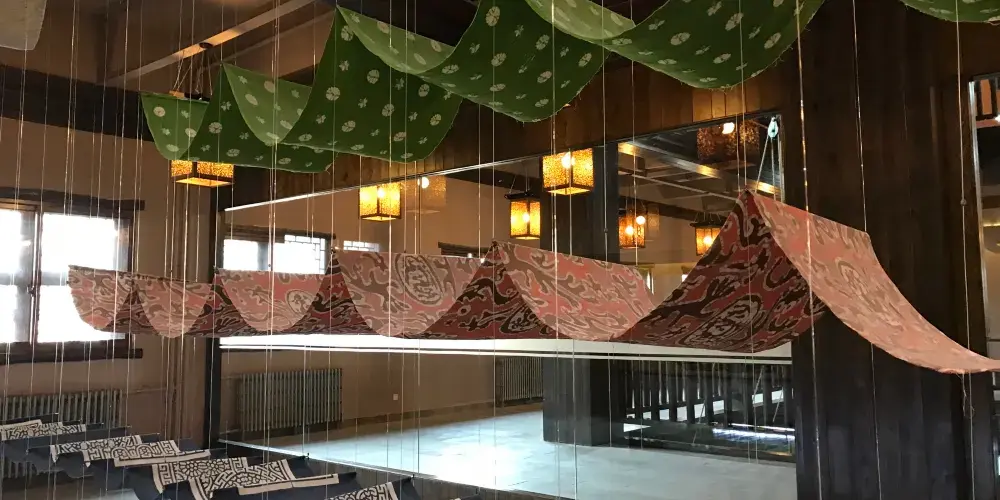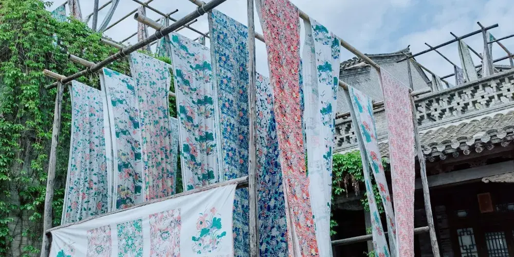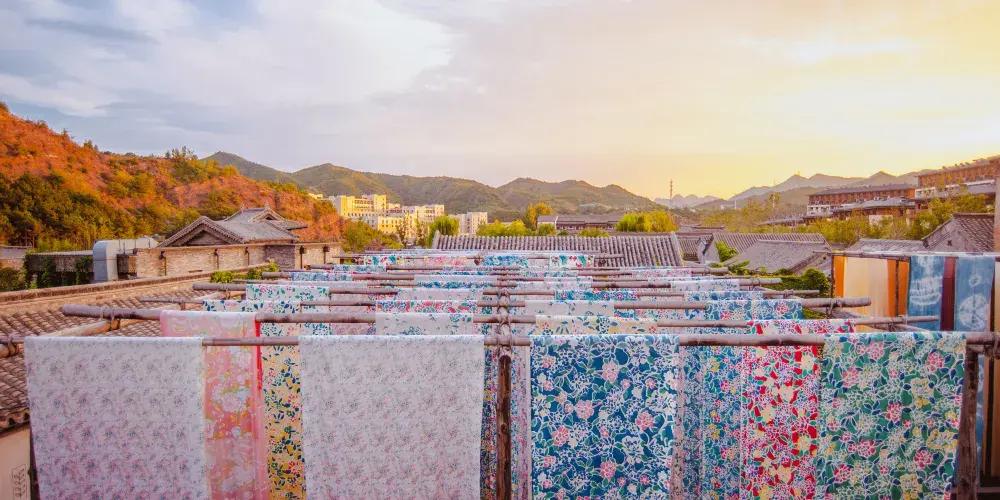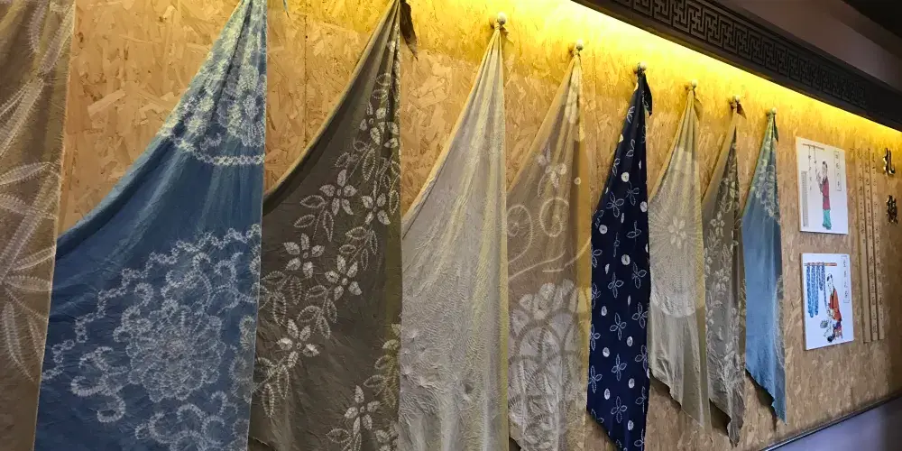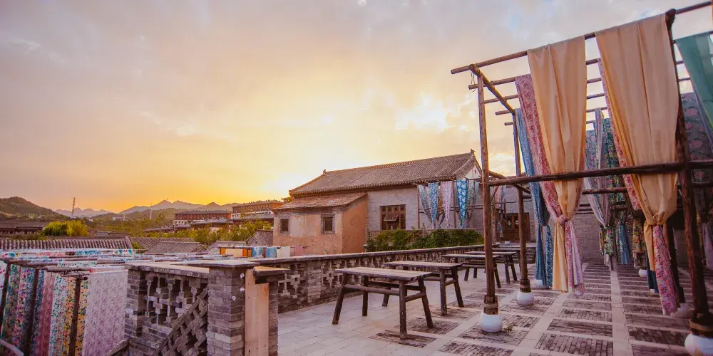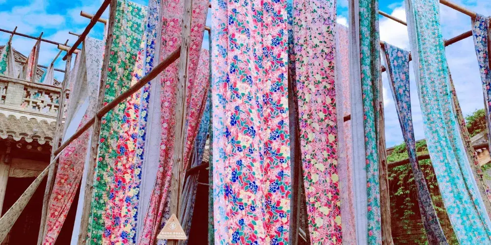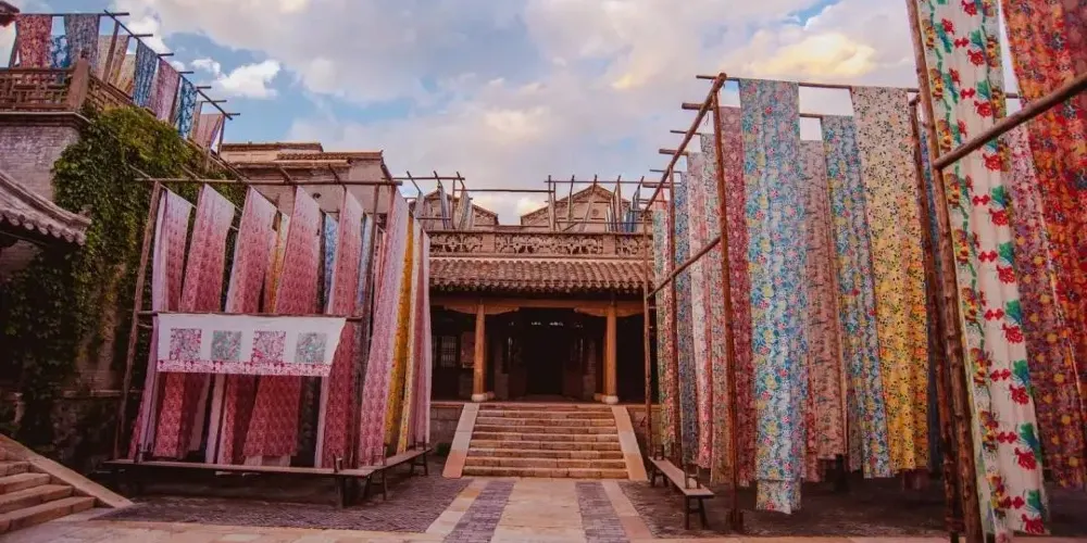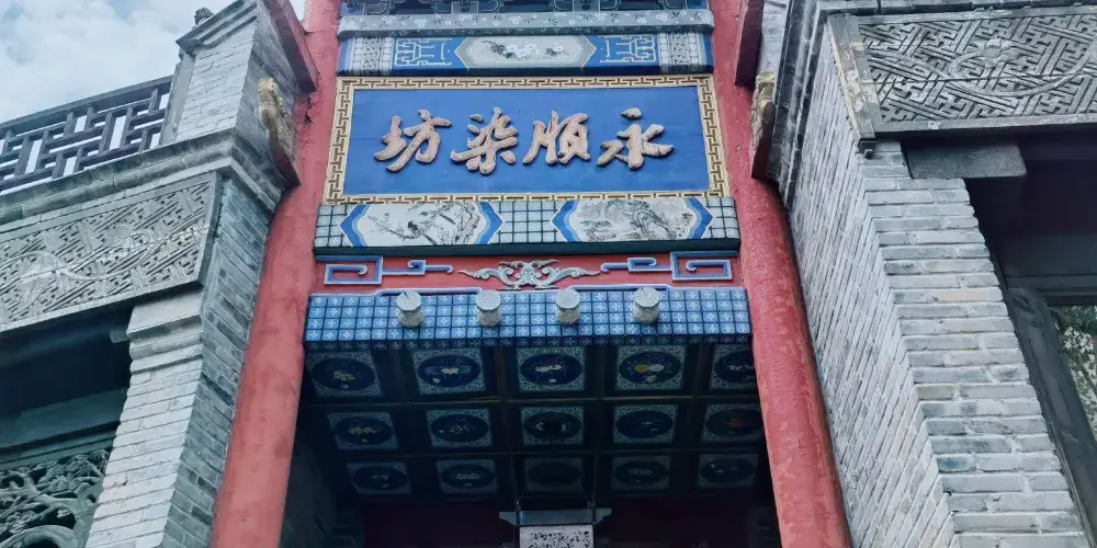 永順染坊創建於1900年,創始人為張聚魁,他年少在家鄉學得一手染匠絕活,能自製土靛染料,後自己開店,為當地百姓加工染色。進門首先看到的是永順染坊的曬布場,這裡是印染布料曬晾之處,也是染坊末尾的工序。在里屋可以了解到中國的印染業的基本知識和工序。