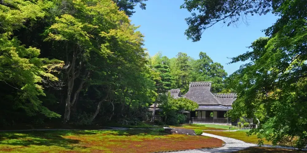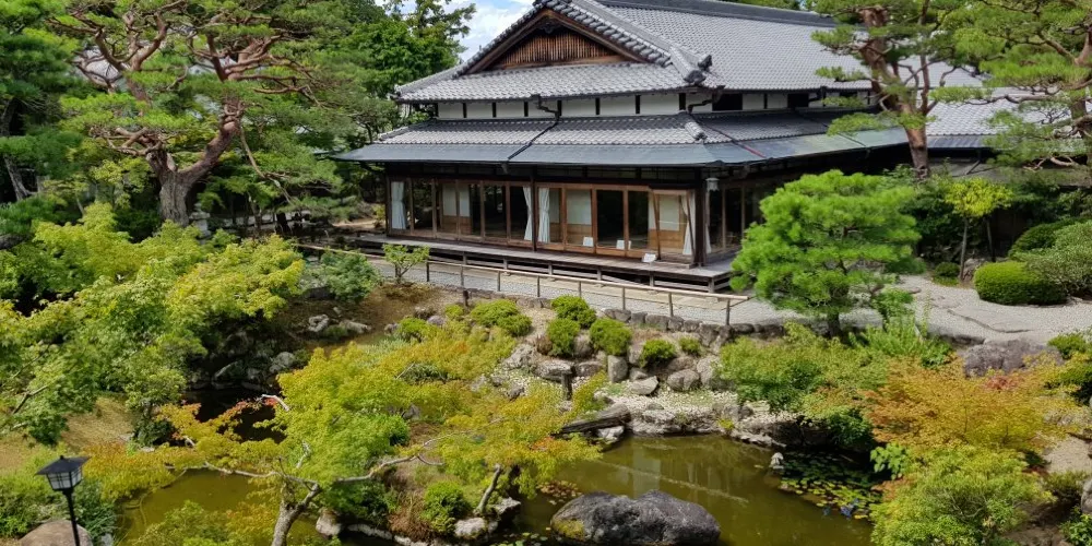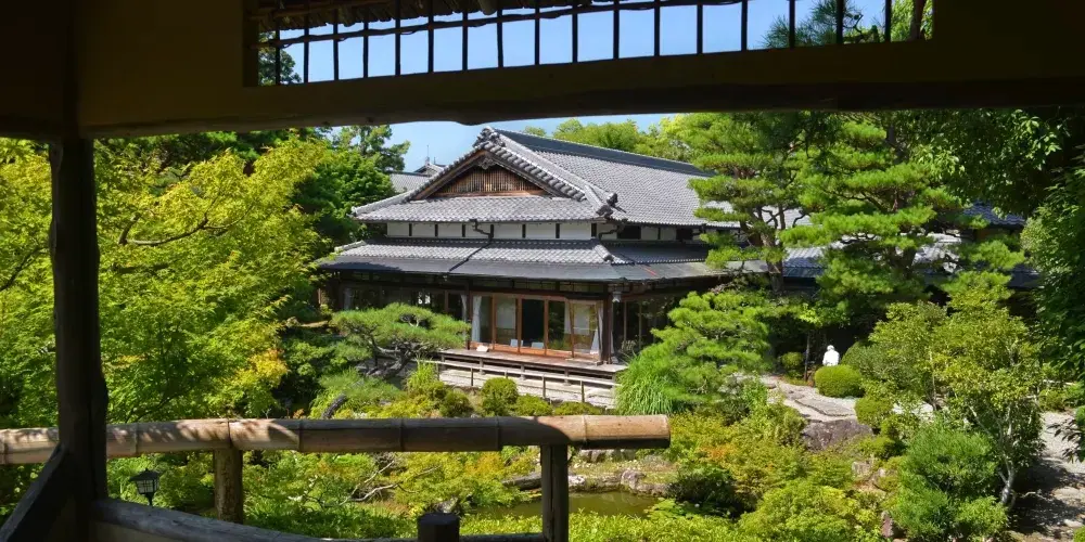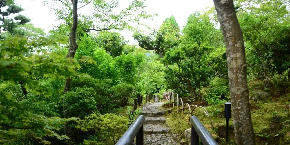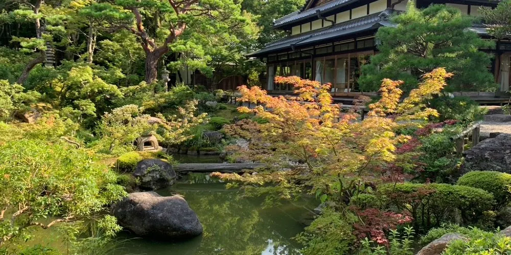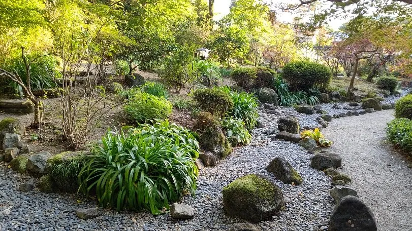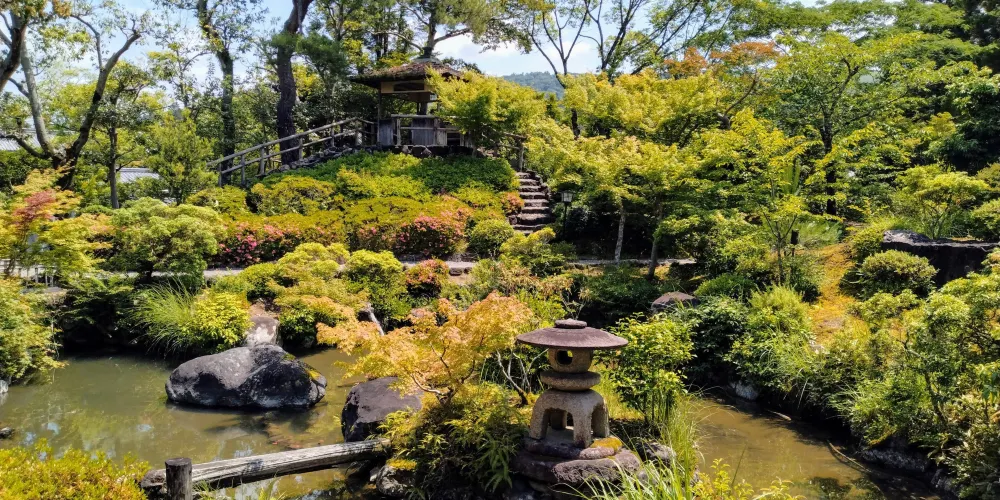 吉城園鄰接著名勝依水園及吉城川旁,是日本和風式庭院。有池之庭、苔之庭、茶花之庭三個部分,苔之庭裡有一座茶室,各個庭院中的青苔是一大特色。根據“興福寺古繪圖”上的記載,此地最早為興福寺的子院摩尼珠院,是興福寺高僧的住所。園內分設有池塘的院子、青苔的院子和茶花的院子。池塘的院子巧妙地利用了江戶時代開始形成的地形的起伏和曲線的變化,使其與建築物融為一體。