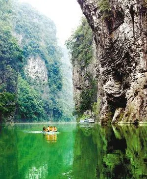 黔江阿蓬江神龜峽景區,山高谷深,形成了獨特的峽谷風光。神龜峽大峽谷是典型性的精品景區。神龜峽河道,呈連環的“S”形走向,幾乎沒有一段平直的河道,其彎道之多,實屬峽谷罕見。在懸崖峭壁上,到處是懸垂的石鐘乳,奇形怪狀。比較典型的有雄獅觀潮、猿人餵奶、牛肝馬肺等景觀。