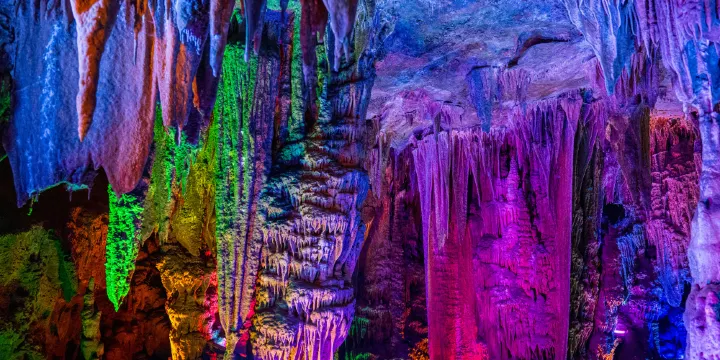 金水岩是世界聞名的地下河水晶岩洞,它橫穿多座大山,岩洞有多個區,分別是旱洞天堂區、泥巴浴區、地下河溫泉區。洞內鐘乳石雄奇突兀,縱橫交錯,有為遊客精心設計的洞外天橋風景道,可以飽覽十里畫廊風光。開始進入旱洞天堂區,洞內不經任何人工修飾,保持原始岩溶風貌。頂部天窗為天然形成,螺旋式的扶梯設計更添加了歐式風采,驚嘆大自然的鬼斧神工,真是別具一格。