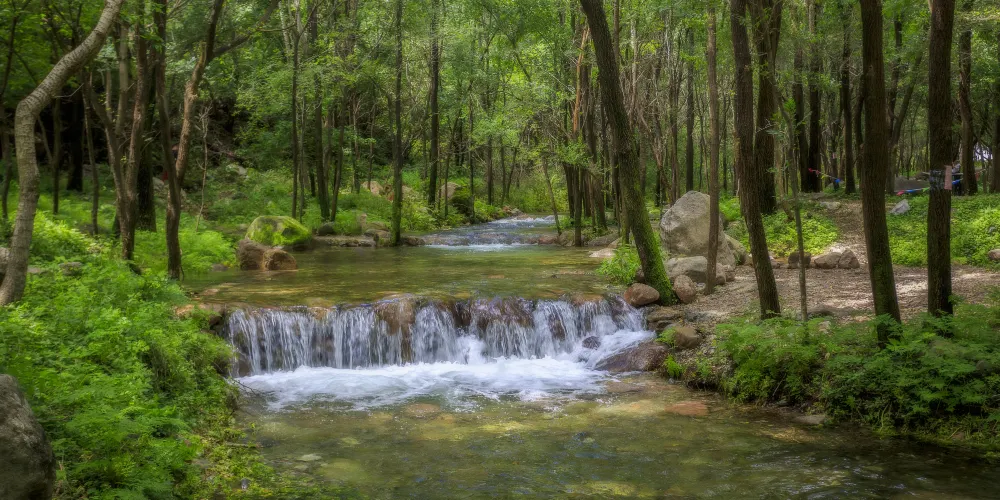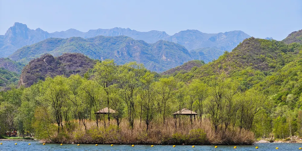 玉渡山風景區地處深山,很少有人來,景色秀麗,環境清幽,有著大自然保存原始的綠色記憶,是京郊一塊鮮為人知的處女地。山中溪水四季長流,春夏秋冬景色各異,隨著風飄蕩,有各種各樣的姿態。核心景點玉渡山爬上山頂可以看見對面山上三棵筆直挺立的松樹,一字排開,人們把它們叫做“三炷香”。