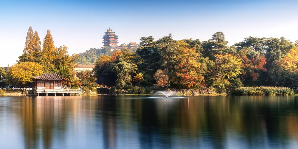 來到環洲可以好好欣賞一下這裏的假山瀑布,眾多太湖假山石造型各異,其中的童子觀音石看起來就像是一個小孩在敬拜,你不妨研究研究。環洲西北部小山上還有郭璞墩,是湖區內的高點。