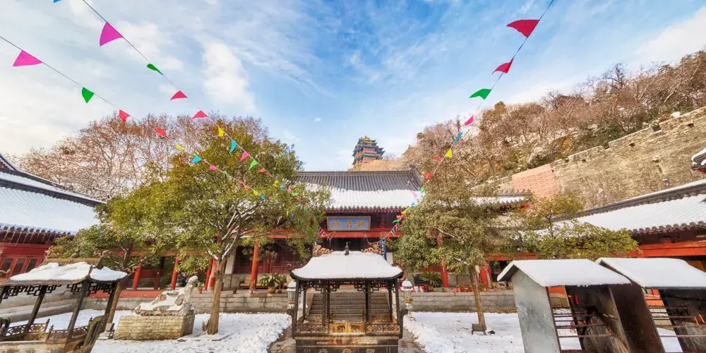 雞鳴寺也叫古雞鳴寺,北臨玄武湖,始建於西晉,是南京較為古老的佛寺之一。清明時在寺前道路可觀賞櫻花花海,夏季登上葯師佛塔可眺望玄武湖的荷花。