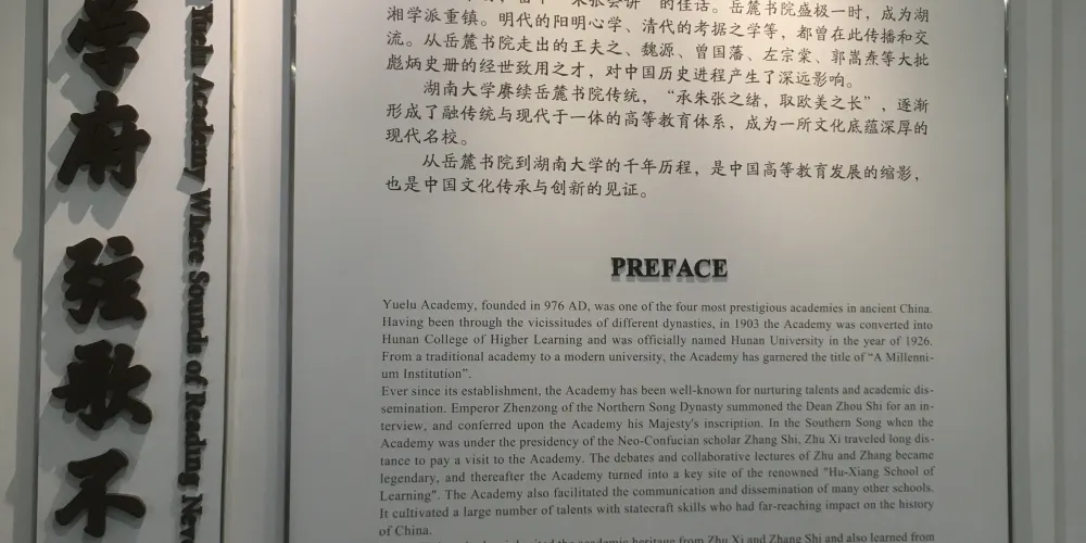 嶽麓書院歷史陳列以大量的圖片、實物、文字資料充分展示了嶽麓書院的發展歷史。