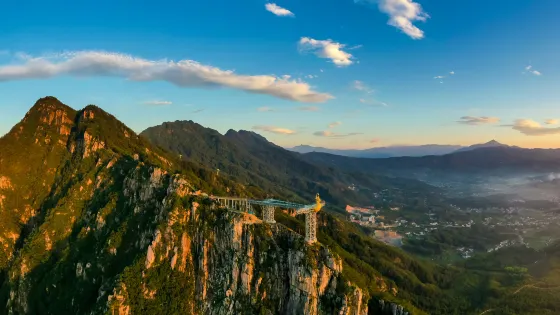 4.6 分9 則評價距離市中心 距離市中心8.2公里規劃面積5000畝,屬山地型觀光探險旅遊區。一山一水一花一村寨,典型的花崗巖地貌造就了豐富多彩的自然景觀,古寺、村寨承載着厚重的人文記憶。飛旗峯雄奇壯觀,鳳凰嶺險峻秀美,鳥鳴澗柔情愜意,村寨寺廟古樸自然。飛旗寨地勢險要,易守難攻、自古就是安營紮寨的兵家必爭之地。通往寨頂的咽喉處,是需憑藉雲梯攀登的峭壁陡崖,人稱“鬼門關”。相傳,在大別山歷史上曾有九峯十八寨,皆為抵禦外敵入侵的古戰場,而飛旗寨就是其中險峻的一處。山寨當中遺留下的古寨遺址、寨牆、古水井、碎磚斷垣尚存完好,映襯出大別山先民在古代發展自身的艱難歷史,也體現出大別山民系的勤勞、智慧、勇敢和善戰。登上寨頂,舉目四望,近、遠處的羣山異峯以至田園村莊,都盡收眼底。飛旗寨是一個融自然風光和人文歷史於一體的旅遊勝地。主要景觀有:飛旗古寨、雲濟寺、點將台、鳳凰嶺、鳥鳴澗、鳳凰之戀玻璃觀景台、飛拉達攀巖、映山紅畫廊等。