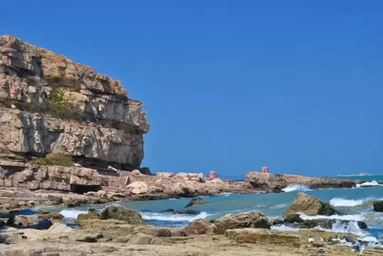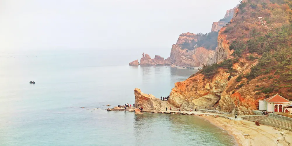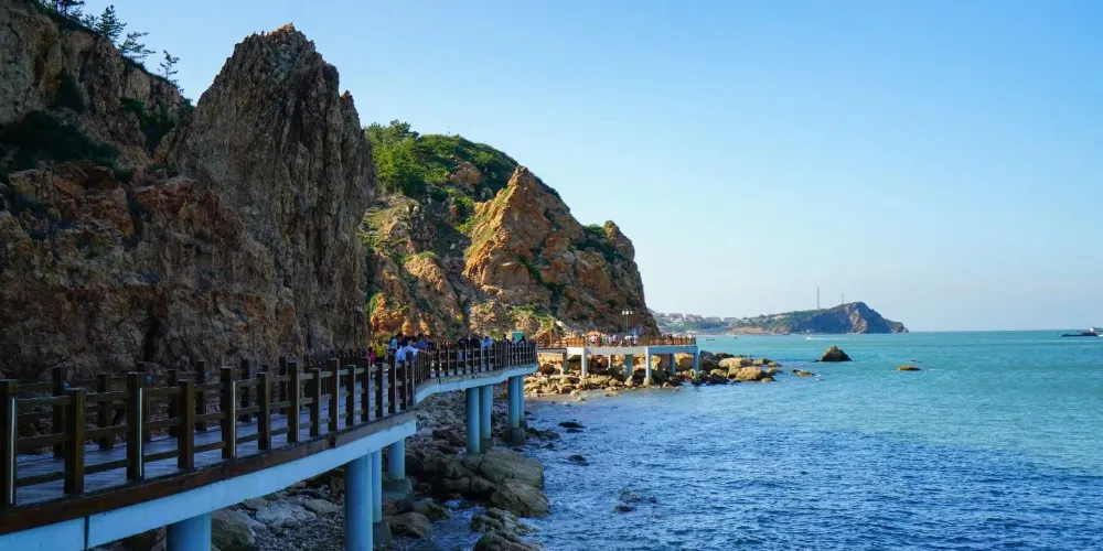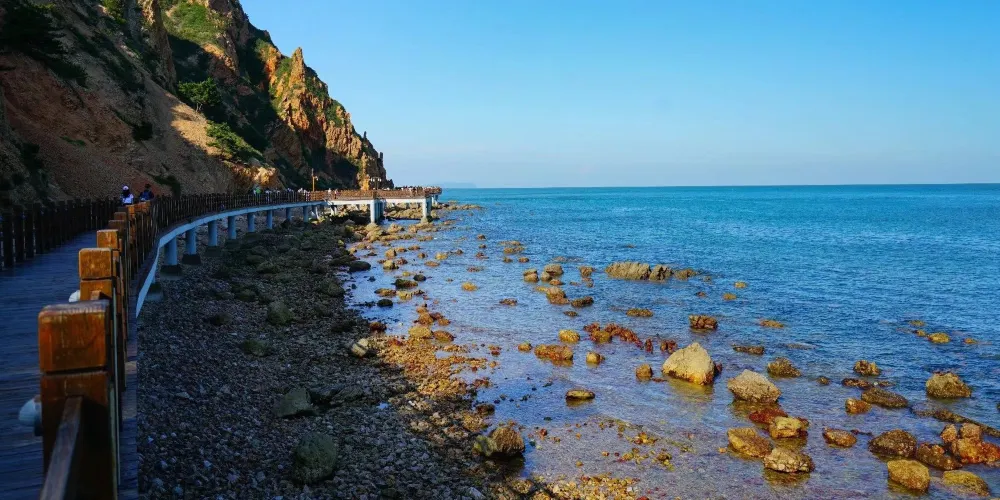 下午遊覽北島的月牙灣,就能看到沙灘上的五彩球石,這些卵石晶瑩如珠,造型色彩相間,花紋圖案精美,甚是神奇。景點內的海豹園棲息著國家保護動物斑海豹,憨態可掬,表演遵循天性,傳遞「守護海洋生態」的理念,適合親子家庭感受和諧之美。接著前往九丈崖,看高聳入雲的懸崖從海邊拔地而起,置身懸崖下時,仰望絕壁萬丈,除了感慨大自然的鬼斧神工,更多體會到的是一種震撼。這裡留存商代遺址,自然景觀豐富:鷗翅灣形似海鷗,龍舌礁如石龍探海,是地質愛好者、攝影達人及旅人的理想之選。傍晚燈塔映霞光,海面上呈現一副殘陽如血景象,遠處大小黑山島漸成輪廓,似剪影、如墨畫,美不勝收。