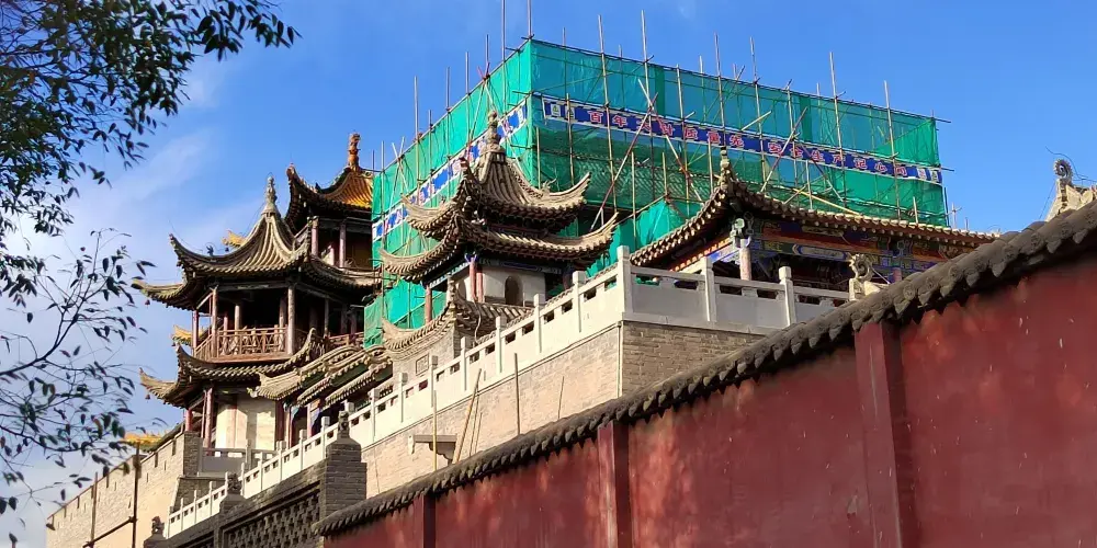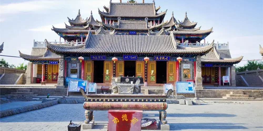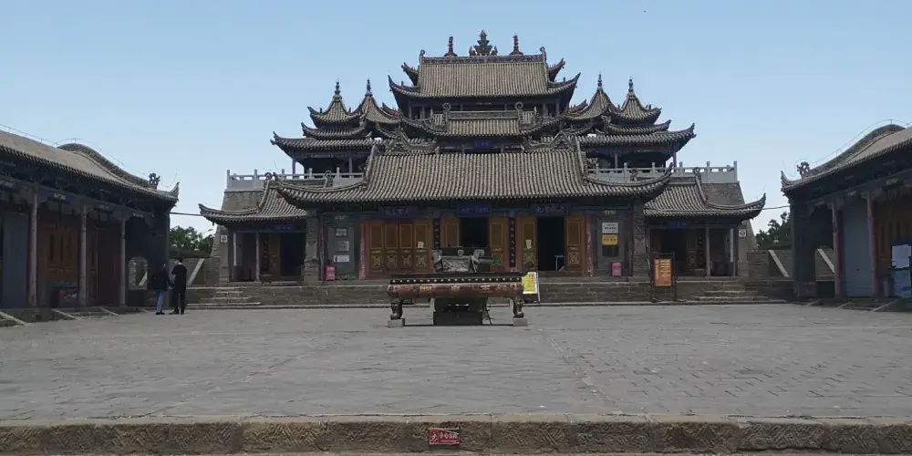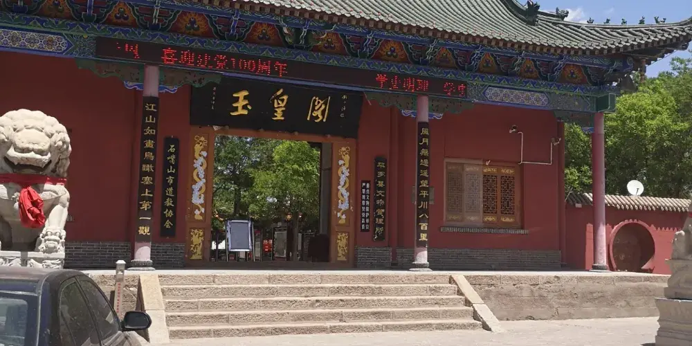 玉皇閣的台座分為4級,由南向北漸次升高,較高的建築為三母殿,距地面26.2米。內有城隍殿、觀音殿、娘娘殿、三清殿、無量殿、洞賓殿、三官殿、三母殿,還有文昌閣、關帝閣、鐘樓和鼓樓等主體建築和大量為遊客服務的輔助設施。整座建築造型獨特,氣勢雄偉,登臨三母殿可憑欄西眺巍巍賀蘭山,東望滾滾黃河。