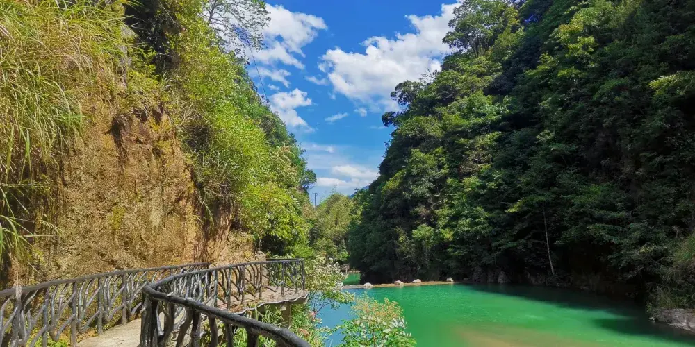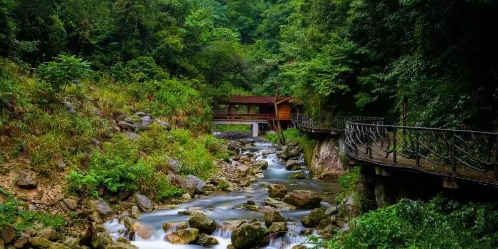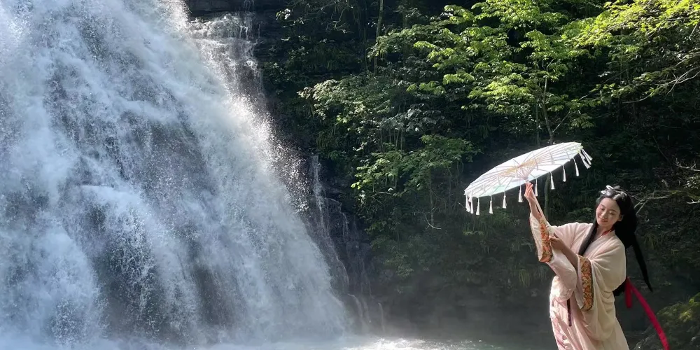 三清山玉簾瀑布景區位於三清山東北部鵝公嶺——下西坑大斷裂帶附近的裂谷中,峽谷長約3公里,環型遊線總長約10公里。由翠簾、玉簾、虹簾、珠簾、霧簾、青帘、鶯簾、風簾、晶簾九大瀑布組成,景區內水落飛花激浪、山含奇石峭壁、林藴異樹珍草。