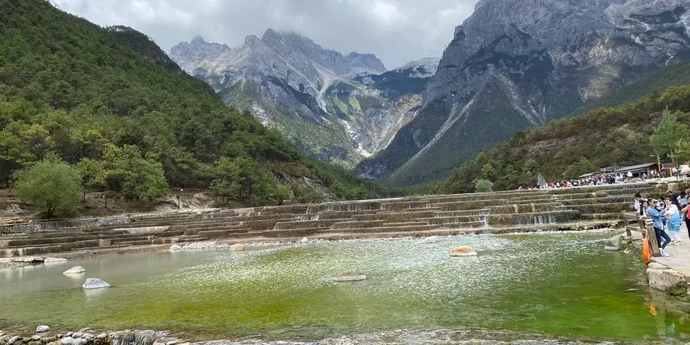 則評價白水河是玉龍雪山腳下的一條河流,由雪山融水形成,因為水質非常清澈,流經過一段河床、台地都是白色岩石的地方,水也彷彿成了白色,因此得名。白水河流經玉龍雪山山脊的藍月谷時顏色五光十色,非常奇幻漂亮,彷彿白色的宣紙上浸了彩。