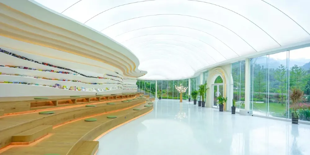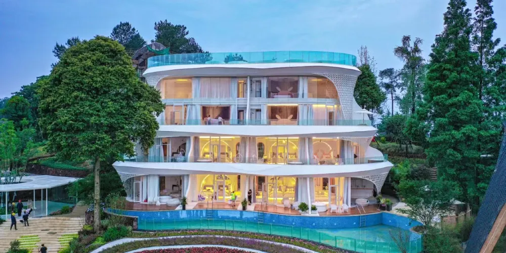 雲頂原鄉藝宿:這裡是山湖藝術的高端住假地。在山脊之巔,雲起之地,以藝術與自然相融為理念,讓疲憊的心靈得到寶貴的歇息機會,找到久違的歸屬感。構建一宿一主題,一宿一體驗的度假目的地。牧雲歸、無憂、雲朵、懸崖、貝殼、鳥巢,花半里......每一棟建築都獨具一格。中式庭院、親子卡通、現代藝術的融合,將度假生活演繹為自然美學與生活美學的新體驗。此外,這裏還在山脊上打造雲頂藝術廳、時光咖啡、雲頂露營地,在延展生活邊界的同時,滿足您對山湖藝術的所有想象。