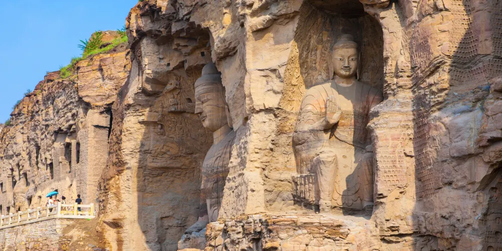 雲岡石窟景區分為景觀區和石窟群,是中國三大石窟之一,雕刻融合了中西藝術風格,感受北魏藝術精品的魅力。雲岡石窟不僅有中國傳統藝術風格,也融合了古印度、西域和中原各民族的藝術特徵,是大同市有名的歷史古蹟。