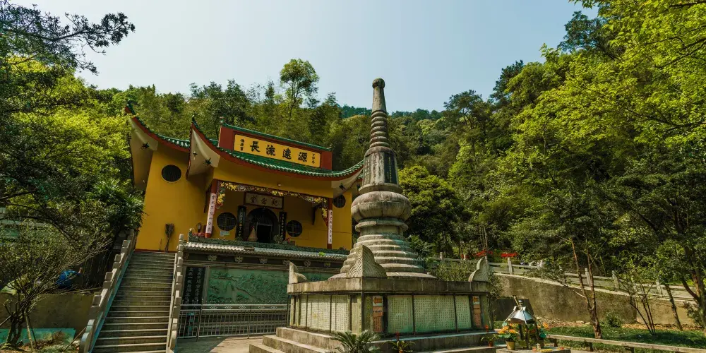 雲門寺後山有個桂花瀑,瀑下有個桂花潭,那裡潭水清澈、是雲門寺很著名的景點。桂花潭一位於雲門寺後山,因分一、二、三潭,又稱飛泉三疊。瀑布從30餘米高崖飛瀉而下,形如玉帛。水聲轟鳴,霧氣縈繞。潭周三面,石壁聳立,其形如盆,直徑20餘米。潭水清底,深達2米有餘。