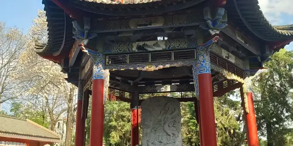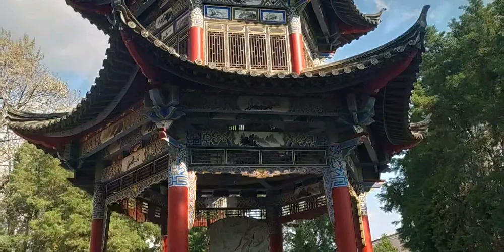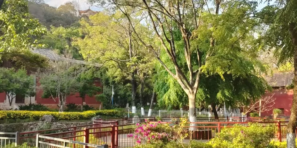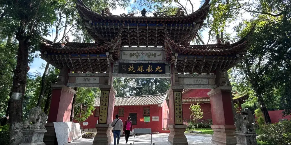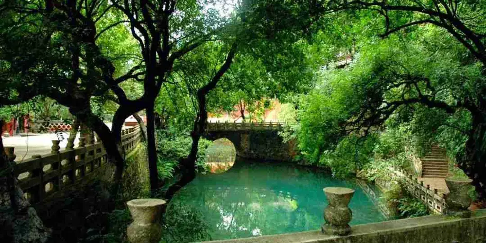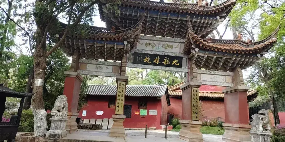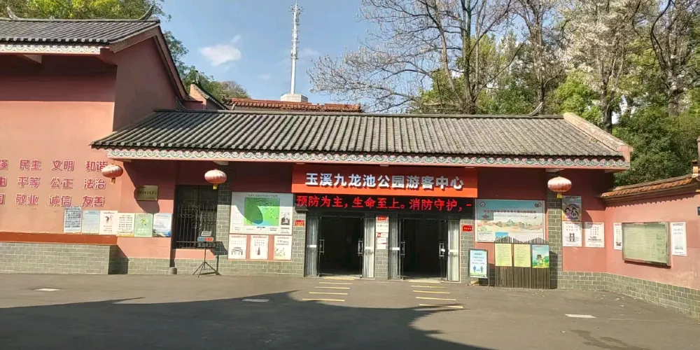 九龍池公園又稱奇黎溪,是當地有名的風景名勝,公園內潭泉眾多,較引人注目的當屬山岩峭壁下那畝見方、清澈見底的大龍潭。甘甜清冽的清泉從泉眼悄悄湧出,終年不盡。公園後倚崇山,前有鬆林做屏障,園內古木參天,綠樹成蔭,高大挺拔的雲南巨松拔地而起,蒼勁挺拔,高達十數丈。山林中鳥語花香,林濤陣陣,清幽寧靜,宛如世外桃源。公園內的寺廟建築眾多,蘊含著豐富的宗教文化內涵,佛、道、儒等多種宗教文化在此交融,反映了當地多元的宗教信仰與文化傳統。公園建立了專門的管理機構,對園內的古建築、自然景觀等進行保護和管理,同時不斷完善旅遊設施,如設置了護池欄桿、石凳石桌、登山遊道等。