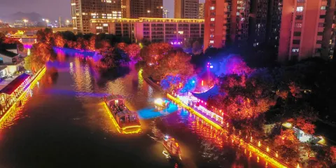 景區內東街、西街、北街、市井街、虹橋、風花巷街衢縱橫,一派繁華的宋韻景象,國風、古風撲面而來。朋克街、宋城門、天空樹、時光樹、相思樹、雲梯漫步、演藝廣場等一步一景,穿越時空。泛舟宋河上,人在畫中游,體驗濃郁的江南韻味。在森林劇院盡情狂歡,在懸崖劇院與風齊鳴。