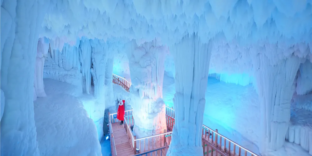 雲丘山冰洞群是自然界的奇觀之一,它位於山西臨汾鄉寧縣雲丘山景區內,2019年2月初次對外開放。為世界罕見的冰洞奇觀,以其獨特的地質構造和冰雪景觀吸引眾多遊客。這裡形成於數百萬年前,洞內常年冰雪不化,展現出晶瑩剔透的奇異景象。洞內的冰柱、冰簾和冰瀑布在燈光的映襯下,呈現出夢幻般的視覺效果。冰洞的溫度常年保持在零度以下,即使在炎熱的夏季,也能感受到絲絲涼意。這裡不僅是探險愛好者的樂園,也是攝影師捕捉自然美景的理想場所。它以其神秘和壯麗,成為自然愛好者不可錯過的目的地。