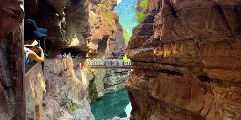 雲台山獨有的地質地貌景觀,被地質專家命名為“雲台地貌”,被旅遊專家譽為“峽谷博覽”,這裏儼然是地質博物館的“萬卷史書”,更是山水風光的“百里畫廊”,遊覽雲台山水不僅可以領略到山水的外在秀美,還可以瞭解到自然的神奇演變,從而使一次衹知其然的山水風光旅遊,昇華為一次又知其所以然的地質科普旅遊。