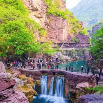 雲台山是國家級風景名勝區、國家首批5A級旅遊景區和全球首批世界地質公園,位於河南焦作市修武縣境內,太行山南麓,豫晉省界交匯處,總面積50多平方公里。雲台山有紅石峽、潭瀑峽、泉瀑峽、獼猴谷、茱萸峯、疊彩洞、萬善寺、子房湖等八個景點,是一處以裂谷構造、水動力作用和地質地貌景觀為主,以自然生態和人文景觀為輔,以峯谷交錯、絕壁林立與飛瀑流泉、清溪幽潭為特色,集美學價值與科學價值於一身的綜合性風景名勝區。